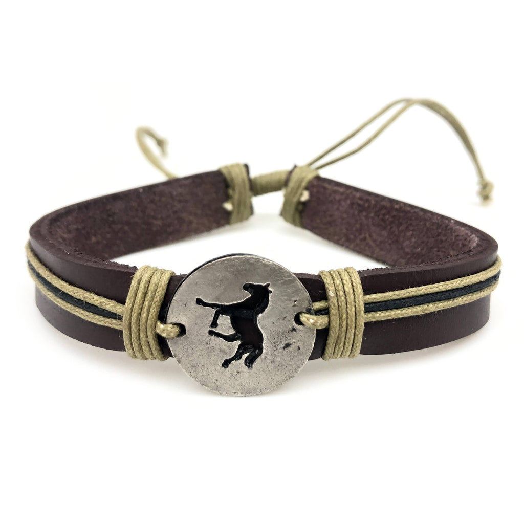 Genuine leather pull tie bracelet with pewter. Unisex design. Handcrafted by artisans.