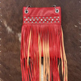 The Chic Bag crossbody handbag features elegant simple fringe accented with crystals. This versatile bag can be worn as a crossbody, waist bag, shoulder bag, or wristlet to complement any outfit. It offers an open sleeve pocket on the outside and two interior pockets—one main and one small—for organized storage. Measuring 6x8x1 inches, it combines chic design with practical functionality.