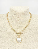 Gold Open Chain with Toggle and Pearl Heart 18" Necklace