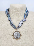 Grey and Navys with Cross Coin Knotted Scarf Neckalce