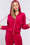 Long Sleeve Faux Fur Hoodie Jacket & Jogger Pants Set: Mgt-Magenta / S