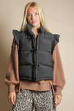 Front Bow Ruffle Sleeve Puffer Vest: BLACK