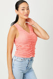 Floral Ruched Tank Top: Coral / Medium