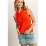 Sleeveless Snap Button Detail Top: TOMATO