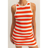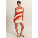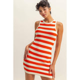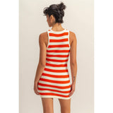 Striped Sleeveless Bodycon Mini Dress: TOMATO/CREAM