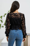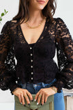LACE BUTTON DOWN LONG SLEEVE CROP TOP: BLACK