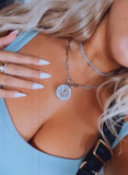 Our favorite design with a link necklace chain! Your initial or the initial of someone you love on this gorgeous necklace. Length: 16" + 2" Material: 14k gold plated brass Finishes: Gold and Silver