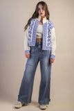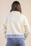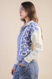 Graphic Knit Sweater Zip Up Cardigan: BLUE