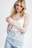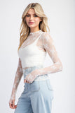 This lace Long sleeve lace top is the perfect layering piece! It features a slight mock neckline, two thumb holes and is a slightly fitted but relaxed silhouette.
