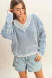 This casual sweater features a noticeable striped pattern, adding a playful twist to its relaxed fit. The soft fabric ensures comfort, ideal for versatile styling. Pair it with jeans for a casual day out or layer it over a collared shirt for a more polished look. Perfect for transitioning seasons.