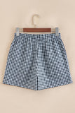Red Plaid Gingham Printed High Waist Shorts: Red Stripe / 100%Polyester / XL
